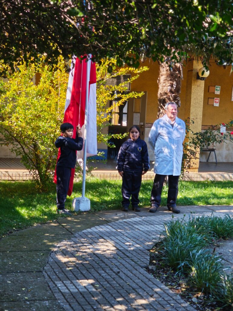 La jornada comenzó con la entonación de nuestro Himno Nacional. Luego, los estudiantes dieron la bienvenida a la semana y presentaron las efemérides más relevantes.